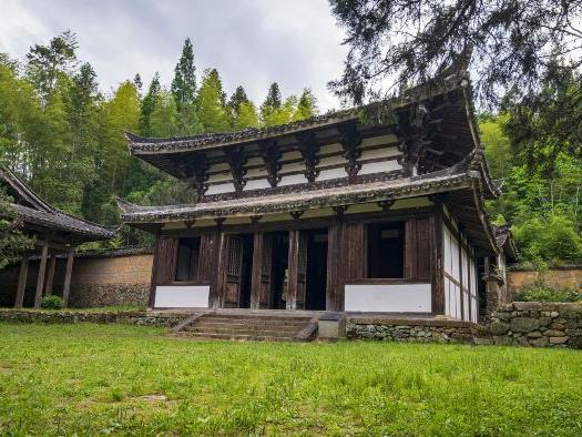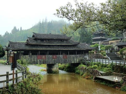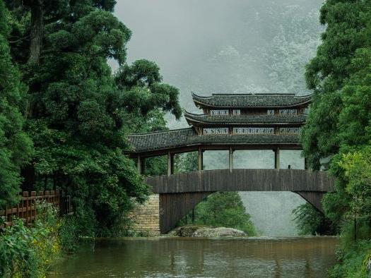 由雪花漈往前大约400米,便进入古村区域了。首先引入眼帘的便是溪上的一座廊桥护关桥,它比后面的胡桥更大气些,是一座清代的三层木结构廊桥,游人可入内参观。由下而上分别是关公庙、文昌阁和魁星楼。云中大漈的瑰宝时思寺就在桥对面,这座三教合一的寺庙是非常珍贵的文物,里面有三座历史建筑,中间的大雄宝殿是货真价实的宋代建筑,尤为可贵。里面的马仙宫是祭祀当地神祗马夫人的;而当你走上外面的明代钟楼,可以远望周边的小山谷和稻田。时思寺外的梅氏宗祠旁有一棵据说已有1500年树龄的柳杉王,粗大的树干已经中空,树叶依然青翠,也是当地一景。