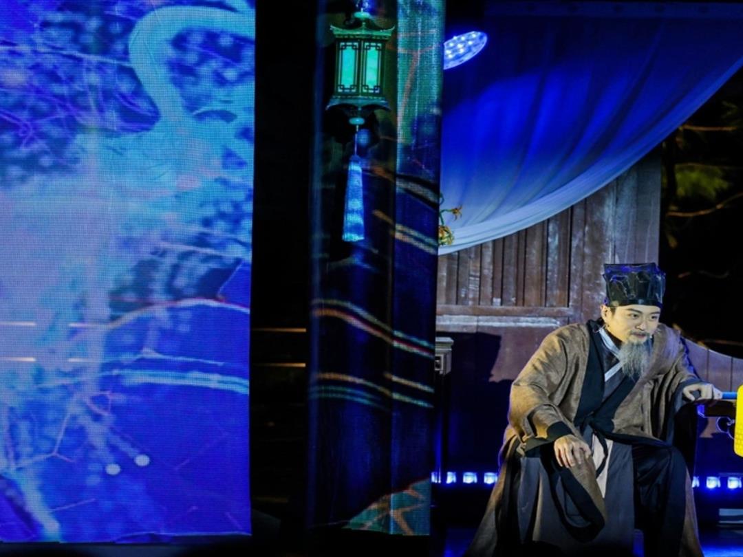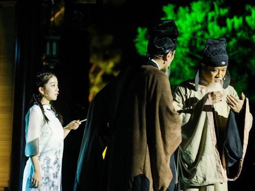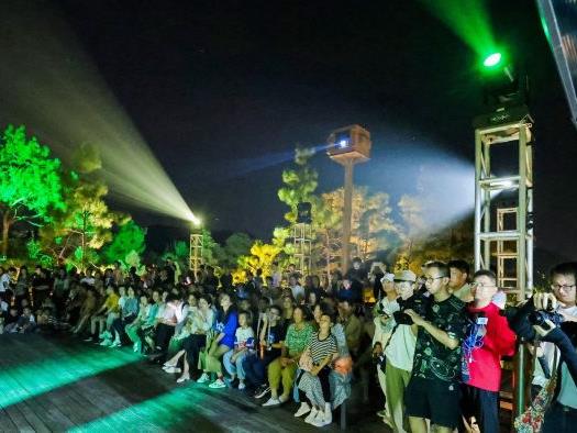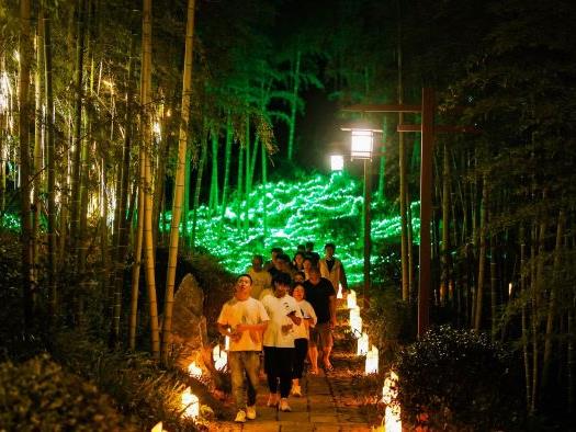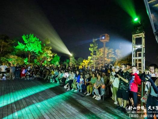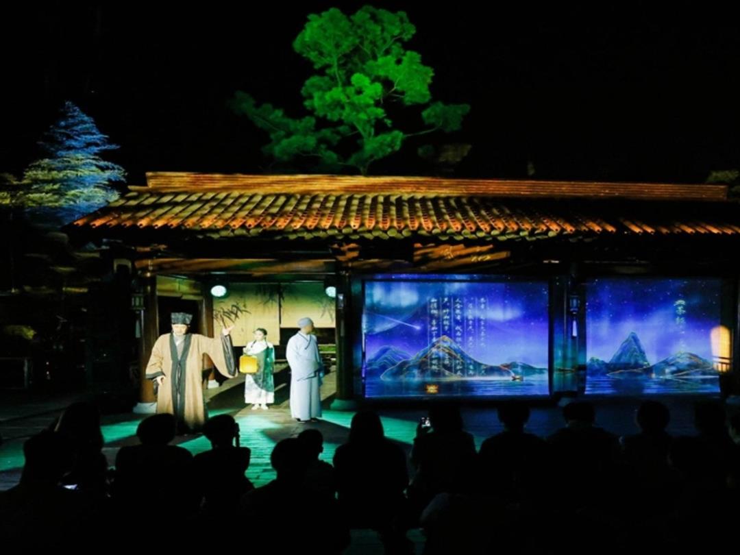 《杼山妙境天下茶经》是一场集声、光、电等现代光影科技与实景剧情文化演艺于一体的行浸式融合互动夜游体验。