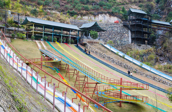 奇想探索乐园座落在浙江省丽水市青田县高市乡(距离石门洞景区1千米),乐园集运动、特色餐饮、休闲游玩于一体,前俯瞰婉约清丽之瓯江,后枕青山碧野之杨梅山,滑雪场滑雪面积超6000平方米,设有初级、中高级两条滑雪道。滑道长度200米,宽度50米。坡度在7°-14°之间,场内由2组电动提升道,365天全天候畅滑。