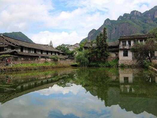 埭头古村位于大若岩镇境内。古称埭川或埭谷,地型由西向东倾斜,其型如船,人称船型之地。埭头古村建于元代后期,背依九螺山,丹崖如染,面对梧山,苍翠挺秀,为陈姓血缘聚居之村落,现有1400余人。埭头古村以陈氏大宗祠到卧龙岗为中心区,分布着陈氏宗祠、积翠祠、墨沼池、墨沼生香、裕后祠、屈庐等古建筑,依山而建,错落有致,层次分明。尤以华祝祠(亦称鲁班祠)。