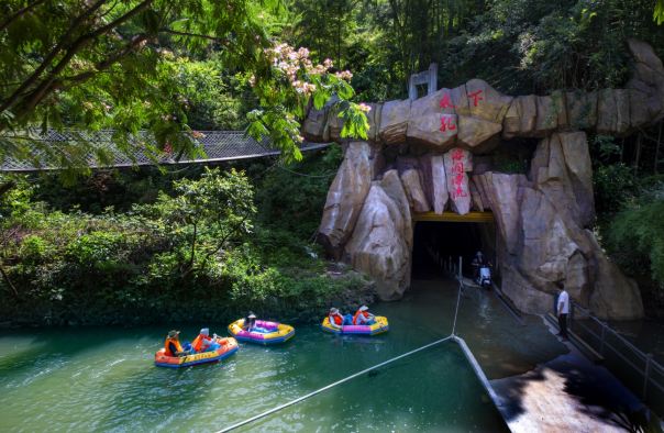 磐安水下孔景区 为AAA级景区,位于磐安县东北部,地处夹溪支流澄溪,距县城50公里,与新昌毗邻,磐新公路在景区边缘穿过,交通便利。景区以“七瀑一湖”的自然景观为主体构架,融“山水、峡谷、飞瀑、洞泉、花草、冰臼”等为一体的独 特景观,孕育了自然界“峰险、壁绝、谷出、瀑奇”的理学文化精髓,三面危崖相逼围成圆形巨穴,澄溪之水,忽从高40余米的断崖跌落穴底,形成七级首尾相接、各异其趣的瀑布,飘者如雪,挂者如帘,断者如雾,穴中雾气蒙,轰声灌耳,撼人心脾,让人叹为观止。