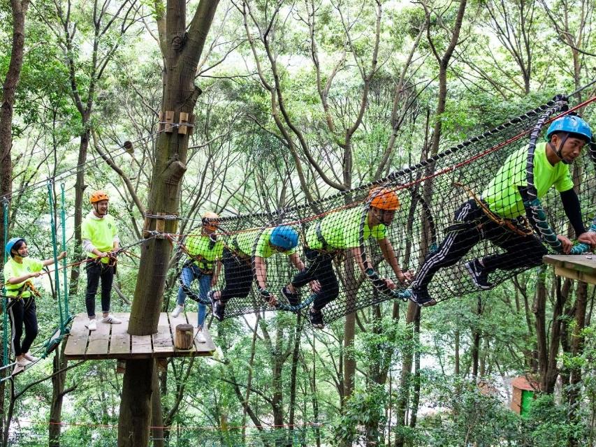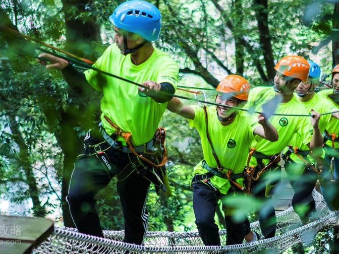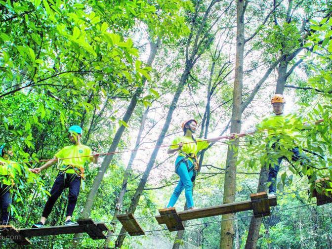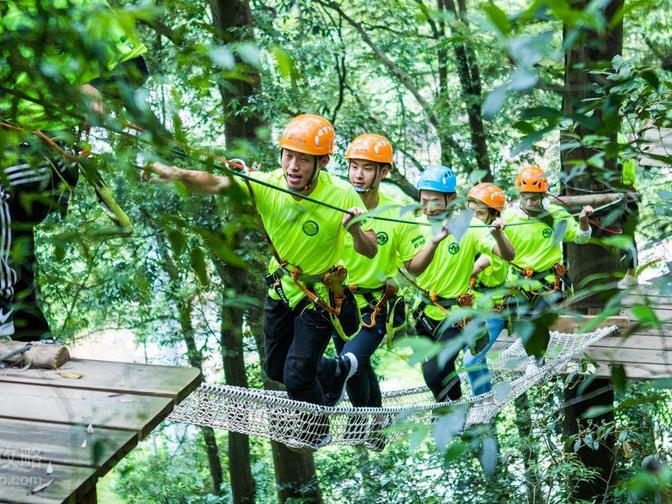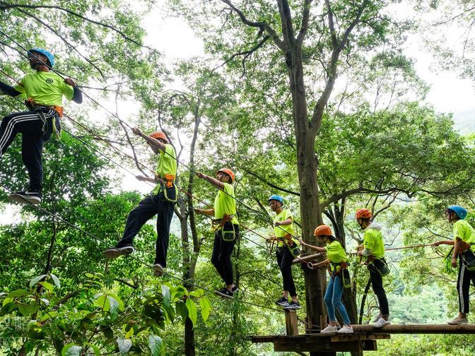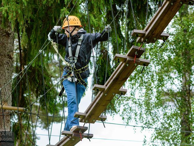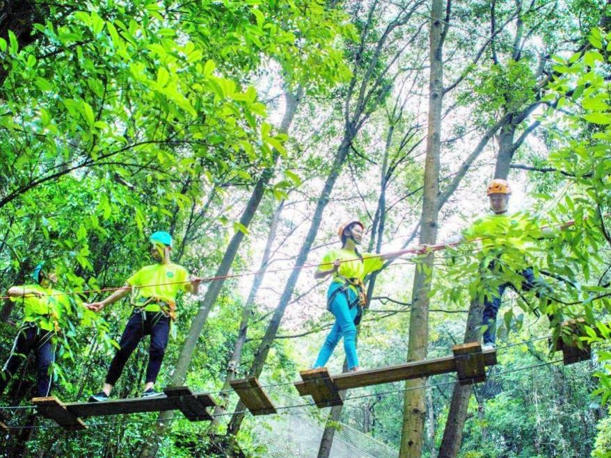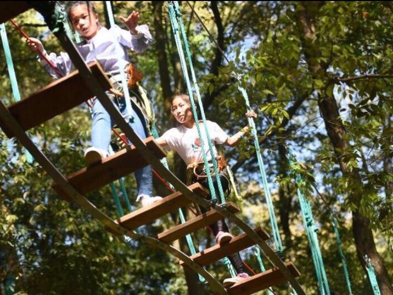 滑鼠丛林飞越探险乐园中的“飞越丛林”是一项在树上进行的探险项目,集冒险、运动、娱乐、挑战于一体,它是用各种各样的障碍环节将树连成一条线路,玩家需要通过悬空桥梁、网道、步道、木桶、泰山秋千、飞狐索道和其他趣味环节等方式进行树木间的探险,通过爬、滑、游、跨、跳、飞等动作越过所有障碍,到达终点。在整个运动中,汇集了高空、速度、力量、毅力等户外探险所必需的元素,为参与者提供了感官上的趣味.