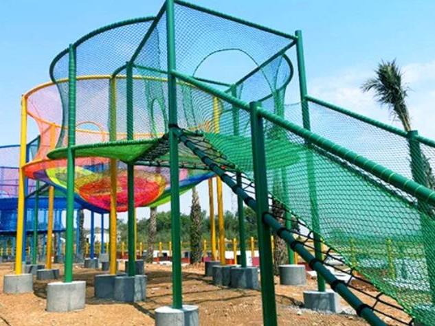 山海之韵游乐园位于温岭市松门镇海韵新村,游乐园内包含多种网红项目:可以赏海景的“7D”玻璃桥,惊险刺激的高空秋千,必不可少的网红七彩滑道,离入口处不远,还有一个网绳娱乐区,整个攀爬游乐网笼占地面积近1200平方米,长90米,宽15米,除了儿童,成年人也能到这一大型网笼里撒欢一番。
