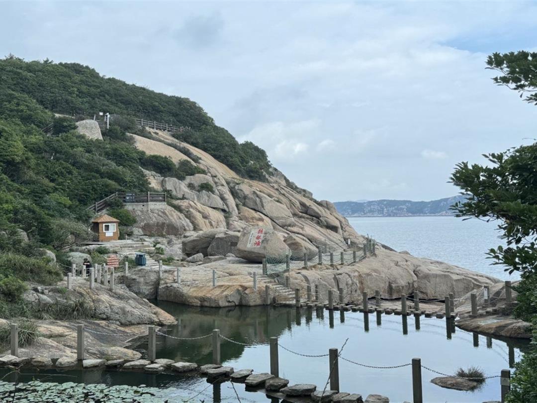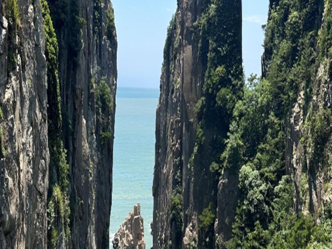 弹指峰状如拇指从掌中弹出,如宝剑倒插在海边,坐落在“鬼斧觖”的地方,孤峰矗立、刀削斧劈、悬崖绝壁、凉风习习。弹指峰也是金庸名著《射雕英雄传》书中描述的黄药师练成绝技之地。