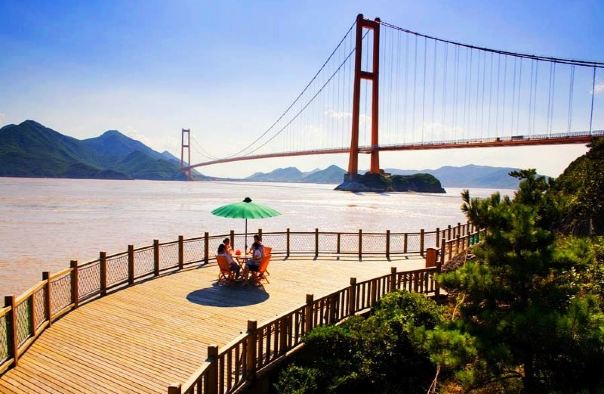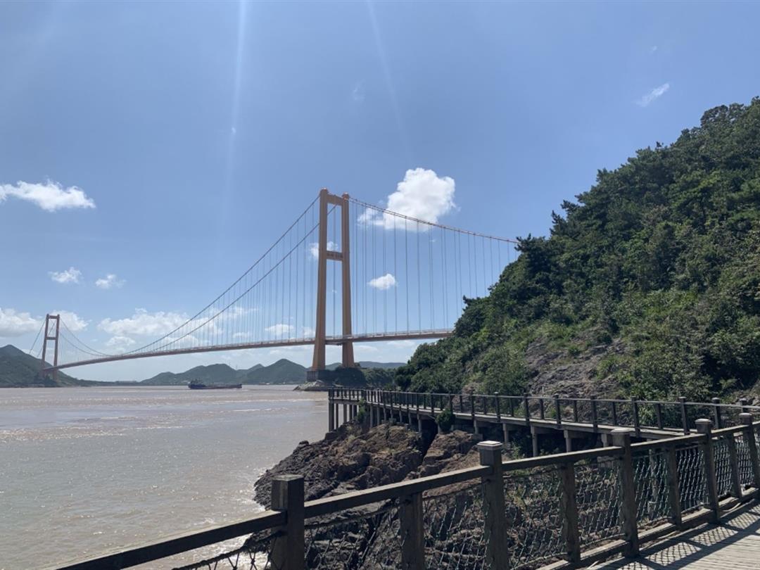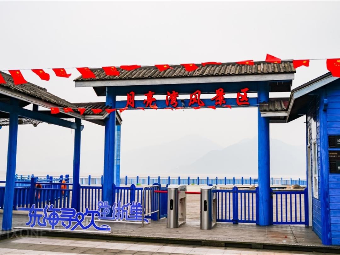 册子岛月亮湾景区位于舟山市定海区西北部册子乡册子岛门头山,距离定海古城22公里,距宁波北仑19公里。景区紧依主跨长度世界第二、国内第一的钢箱梁悬索桥西堠门大桥,大桥雄姿英发,夕阳之下,妩媚并显,刚烈与柔情浑然一体,相得益彰。 册子岛上有西堠门大桥和桃夭门大桥穿境而过,金黄色的西堠门悬索桥和蓝天色的桃夭 门双塔斜拉桥,雄伟的白色桥身、形制各异的大桥样式与苍翠的海岛山林、崎崛的海岸基岩、辽阔的蓝天碧海融在一起,构成了与众不同的海岛旅游新景观。原生态的乡土文化,海岛民情风俗清新自然,拥有清代民居风格的古村、民居。
