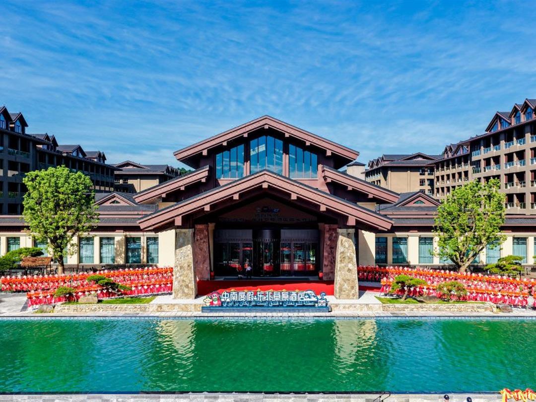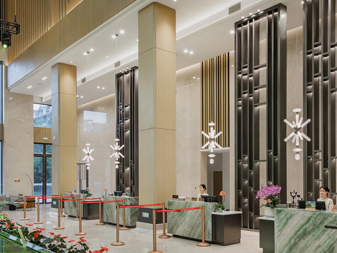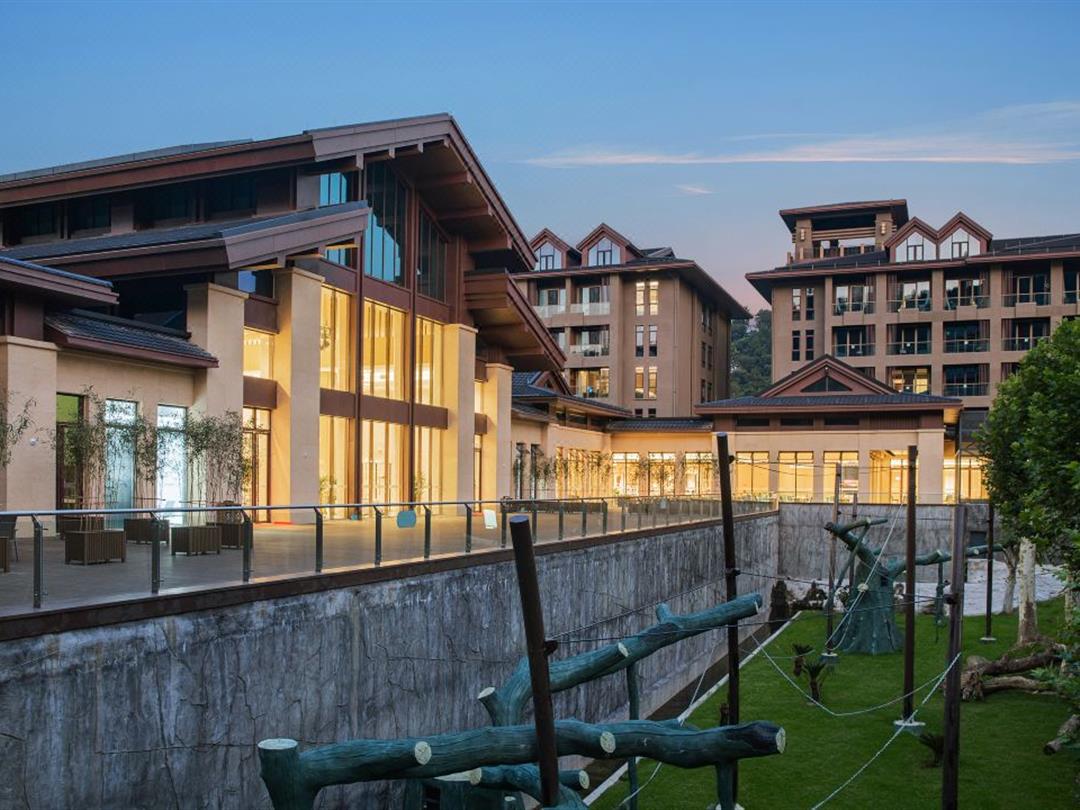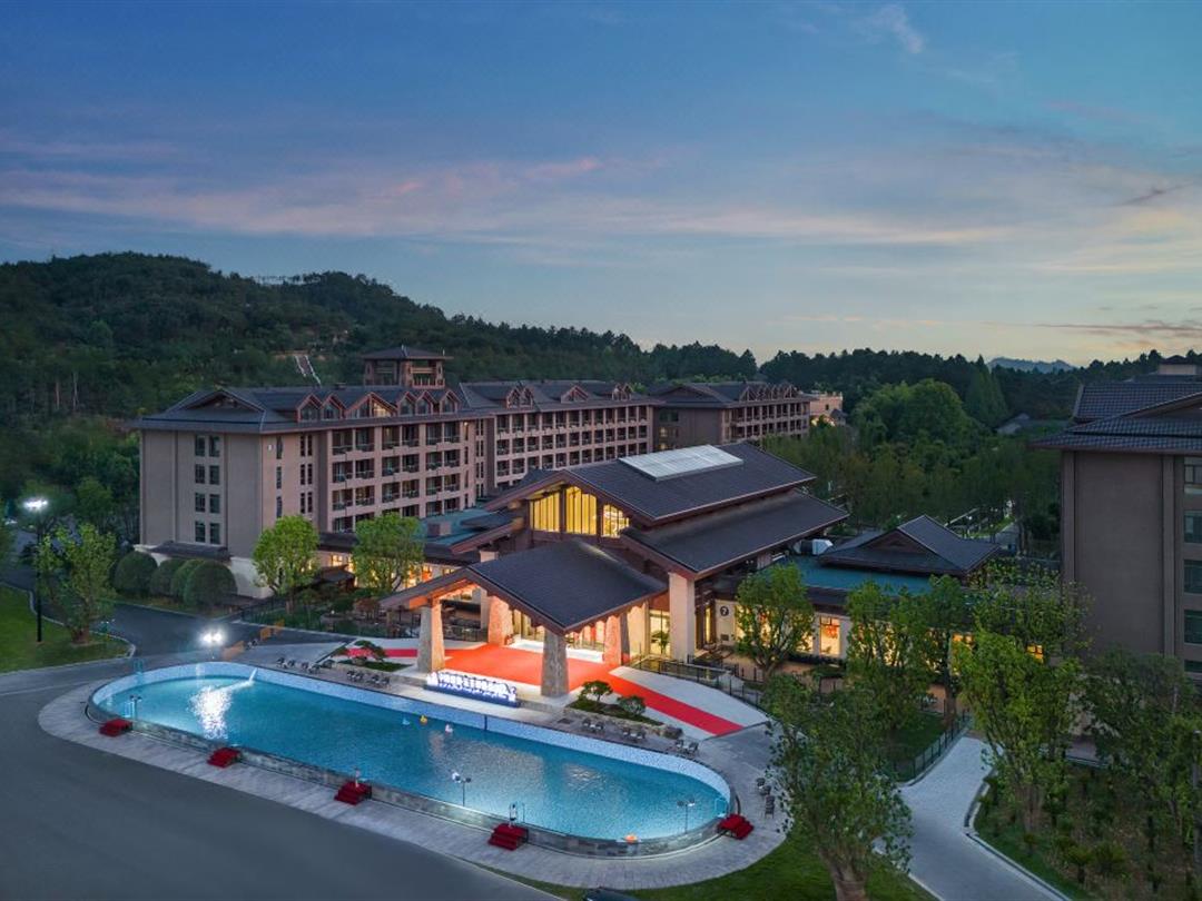 休闲设施包括恒温星空泳池、无边泳池、大泡池及古法茶馆、竹海音乐厅,满足不同客群需求。亲子玩乐设施丰富,配备儿童淘气堡、大浪水乐园,更有欧洲牧场小火车(9:00-16:00整点发车,50分钟行程),可中途投喂袋鼠、羊驼等萌宠。此外,酒店提供600余免费车位及景区接驳服务(步行2分钟至百草原,支持电瓶车租赁或免费接驳车),解决出行顾虑。