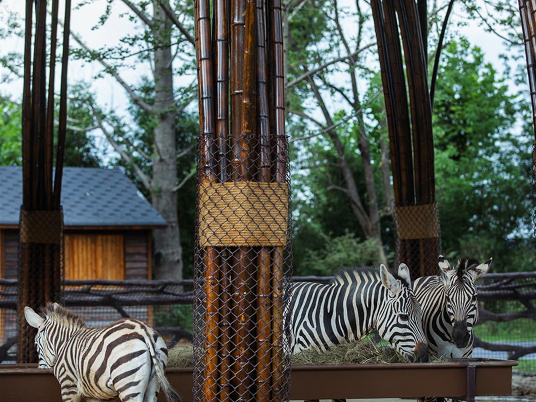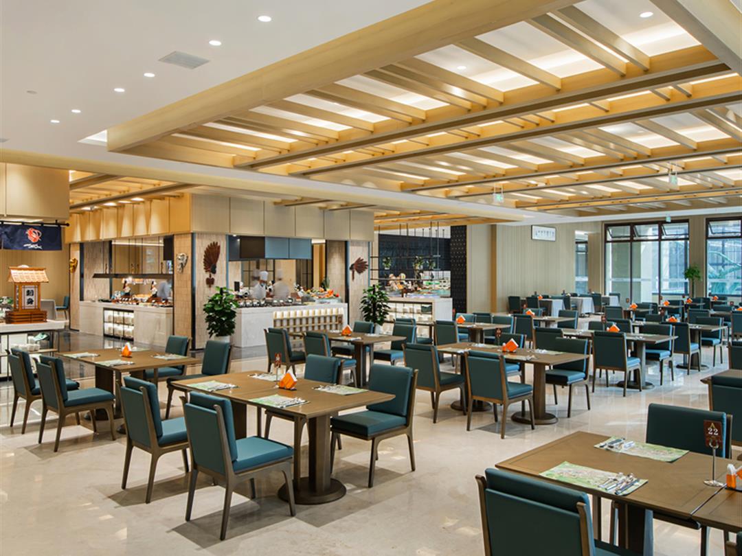 酒店配套设施完善,涵盖餐饮、娱乐、休闲等多维度。餐饮方面,设有全景自助餐厅,提供非洲香料烤肠、“长颈鹿拉花”咖啡等特色餐食;