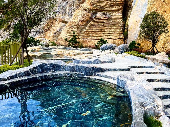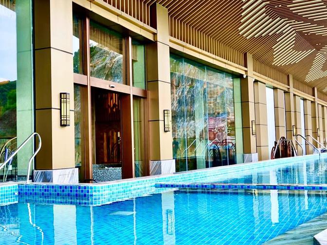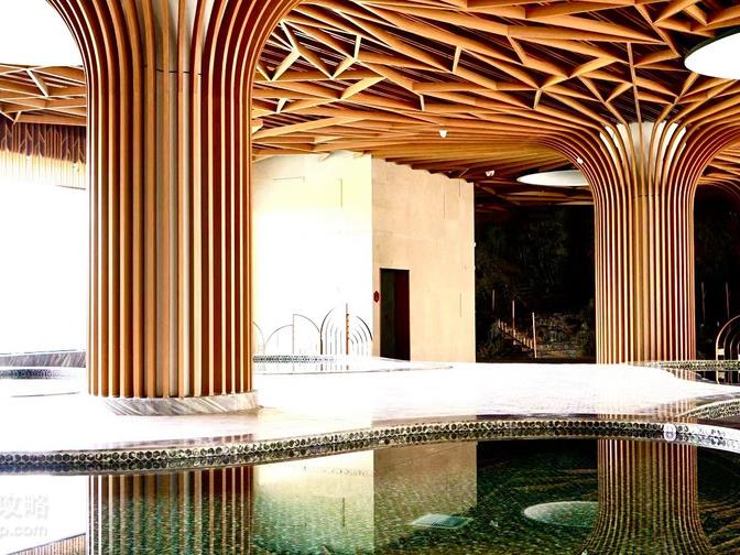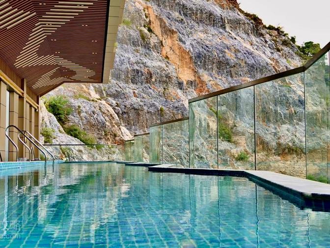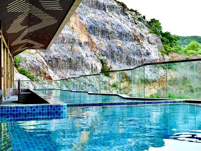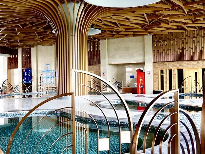 拥有300平恒温泳池,两个儿童戏水池,提供泳具租赁服务,水温28摄氏度;5个泡池,其中三个泡池为特色池(名称为:牛奶池、薰衣草池、红酒池),三个山洞泡池,一个户外露天泡池,水温42-45摄氏度;男女更衣室及淋浴间,客人领取客衣及毛巾区域;2个功能房:石板房,桑拿房;1个景观池;4个露天悬崖泡池;由三楼坐电梯上4楼悬崖温泉泡池。