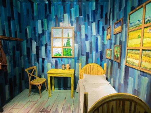 常州梵高星空艺术馆近千平方的馆内,50多个拍摄主题、几百个拍摄角度,将带你进入梵高的麦田,领略独特的星空。此次梵高星空艺术馆区别于传统的艺术馆,以荷兰后印象派画家梵高的一生为主线,所有场景均为纯手工绘画完成。其中的影像互动装置,观者可身临其境于无边无际的星空中,打破立体绘制与二维视觉界限,让观者视觉与平衡感产生“错觉”,融合透视学、设计学、几何学及心理学的艺术形式,梵高艺术星空展将颠覆想象,给你一个做白日梦的机会。
