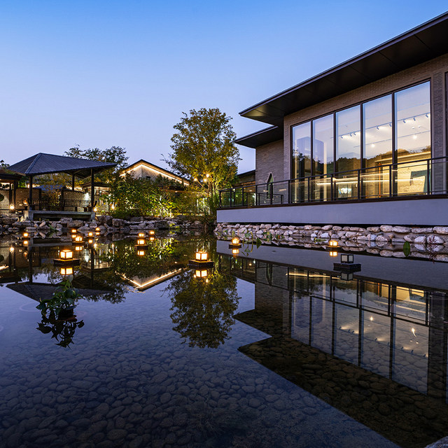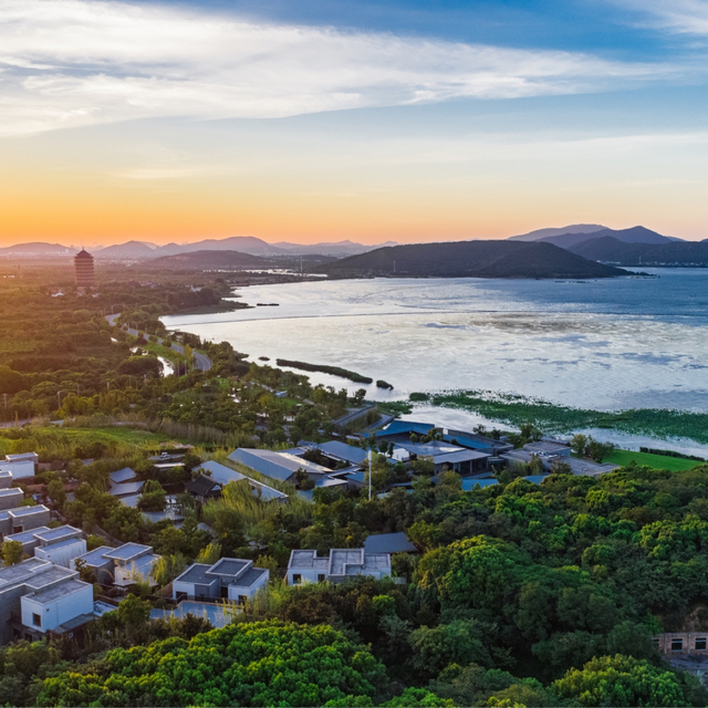 它选址人少景美的北太湖西京湾内,与水为伴,占地约150亩,园林建筑、私家花园、青绿草坪与荷塘栈道、太湖风光层层相系,成就了一片“只对住店客人开放的山水秘境”。毗邻非物质文化遗产的苏绣发源地镇湖,周边更有花花海、茶园、农场…是当下很多苏州人都未曾听闻的太湖畔生态避世地。