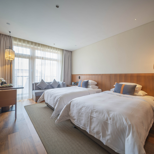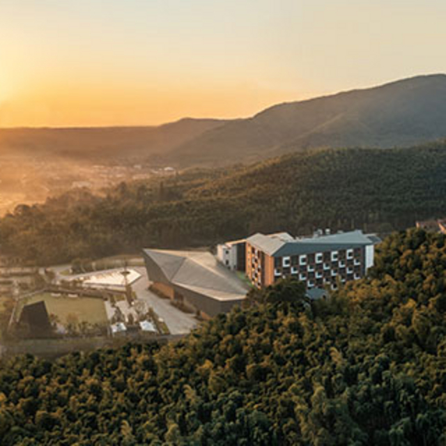 酒店以现代简约的设计手法,依托南山深厚的江南文化和隐士文化,塑造了舒心休闲的度假地,由加拿大籍建筑设计大师葛雷格先生亲手操刀设计,采用全新节能建筑概念—德国被动式节能房标准设计建造,能够达到恒温、恒氧、恒湿、恒静、恒洁的宜居状态。