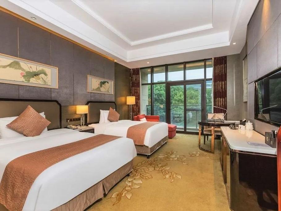客房均被风景环抱,落地窗将窗外景色尽收眼底,享“鸟鸣山更幽”的诗意景象。