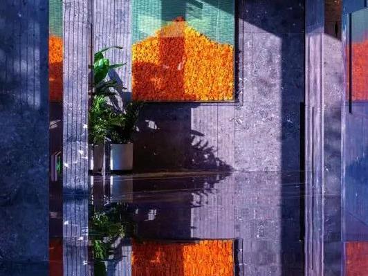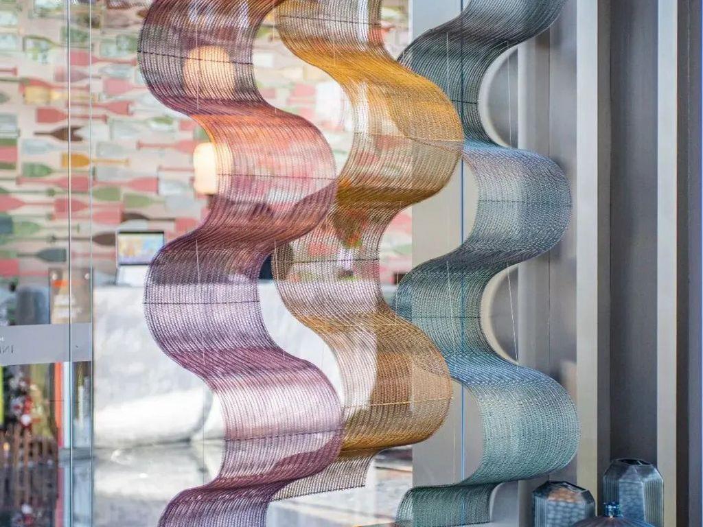 ▲大堂入口以金属材质打造水波样式的艺术品,让宾客一进入,既能感受南方的温婉气质,又能呈现英迪格的活泼动感