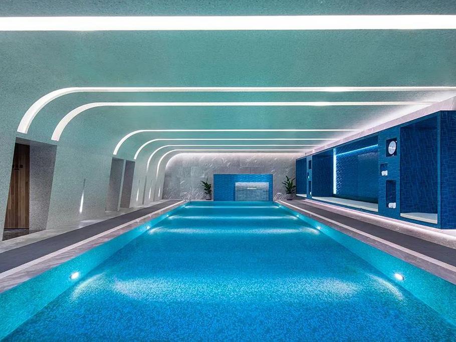 四季恒温的室内泳池颇,仿若是引来不远处的湖水流入室内,时尚又大气。