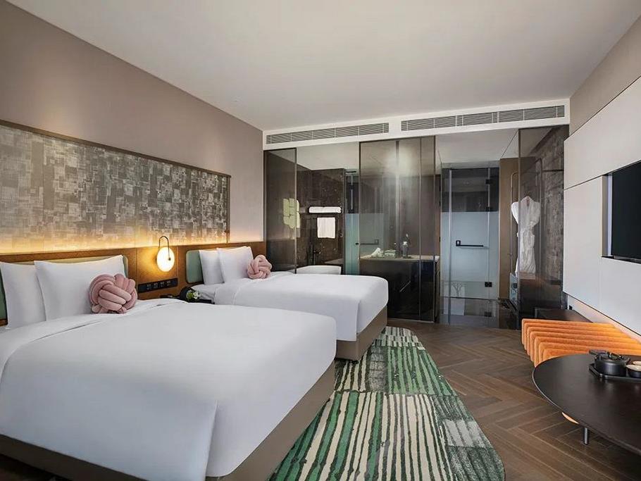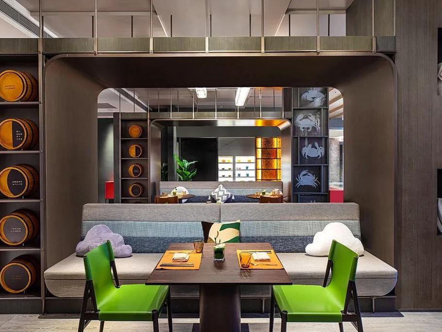 整座酒店以以“蟹、网、湖、莲”这四大极富阳澄湖特色的元素为设计灵感,搭配蟹橙、森林绿、湖水白等活泼跳跃的色彩,将当地邻间文化展现淋漓。