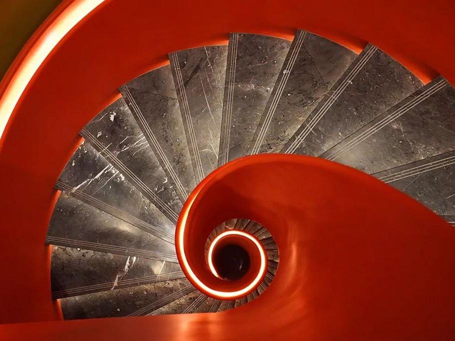 当然,整座酒店室内设计中,吸睛与出片的当属火红的旋转楼梯!