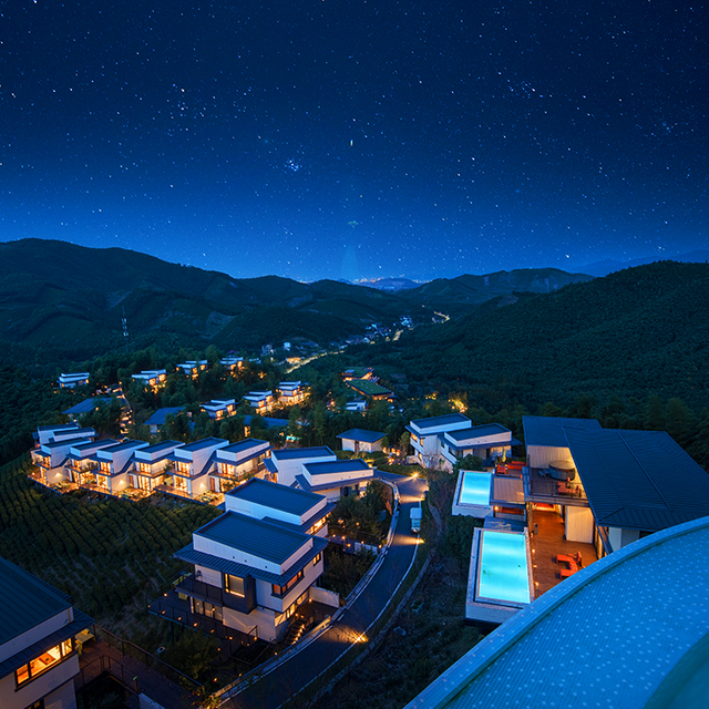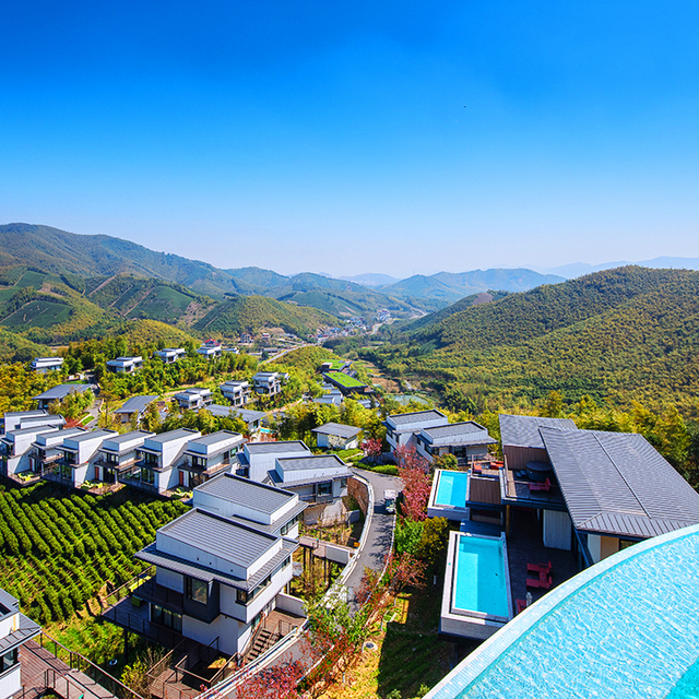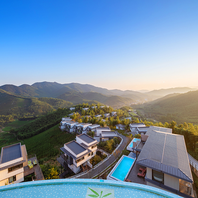 别墅区共有63栋山间独栋Villa,依位置和景观的不同,被划分为竹居、茶居和山居。其中竹居和茶居为双卧独栋别墅,共53栋,均配有户外自带超大景观露台,竹居别墅内有两间1.8米的大床房,茶居别墅内有1间2.2米大床房+1间1.1米*2的双床房。