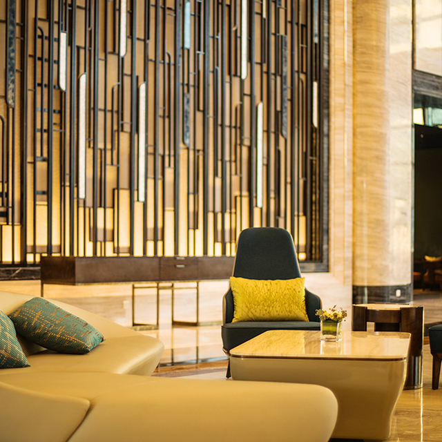 内部设计是由与参与鸟巢、南京青奥中心等项目的金螳螂设计院操刀,雅致有格调,处处透着精致。步入大堂,一眼就被水晶吊灯吸引,临窗摆放的钢琴更添几分高雅。