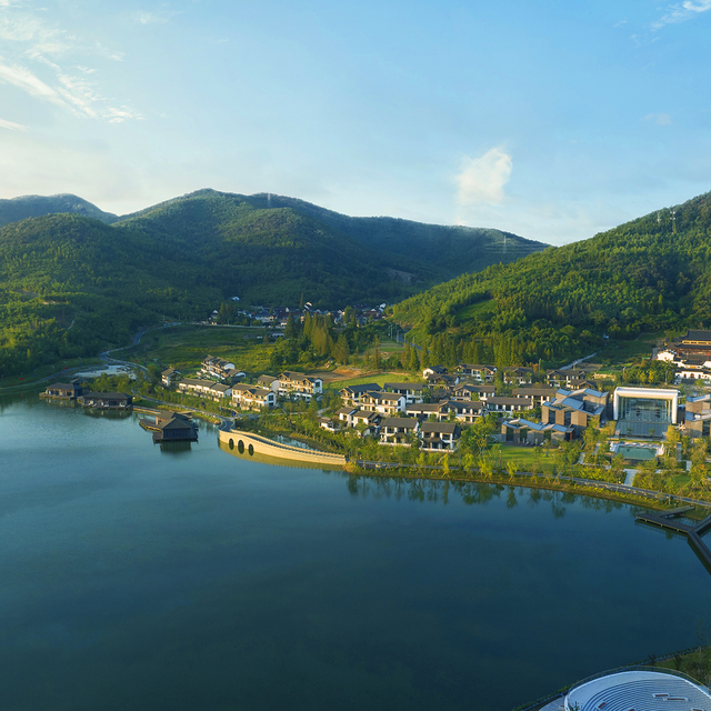它选址湖州妙西镇西塞山麓楂树坞村,依凡常湖而建(古村落,曾因唐隐逸诗人张志和的《渔父》词:“西塞山前白鹭飞,桃花流水鳜鱼肥。青箬笠,绿蓑衣,斜风细雨不须归…”而闻名于世;茶圣陆羽也隐居于此),与森野湖泊为伴之余,山上有茶园成片,山下有白鹭齐飞,整个酒店就像是一座天然氧吧,宜居宜游宜梦。