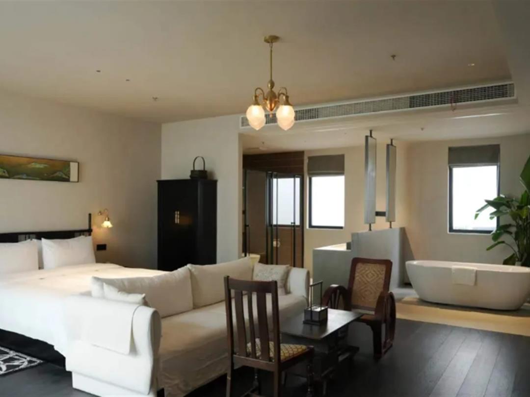 ▼共2间庭院大床房,面积50㎡,配有中央空调、地暖、儿童备品、茶具、浴缸,可私享幽静庭院空间。