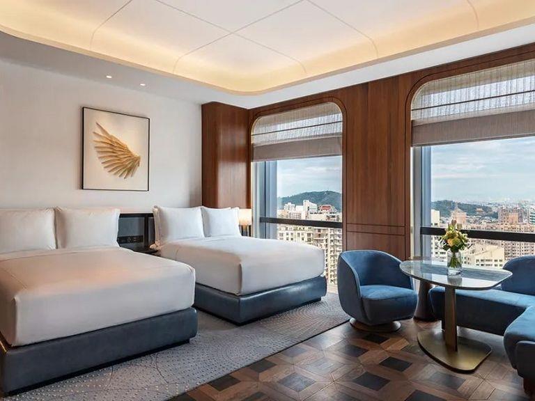 厦门WA共245间客房及套房,从19层起开始分布,面积55㎡起,间间都设有浴缸。其中,双床房尤其适合亲子家庭出游,床型为1.5米x2,可满足二胎客人需求。置身客房,可将城市景观一览无余,部分更观赏莲花公园景致和落日晚霞风光。