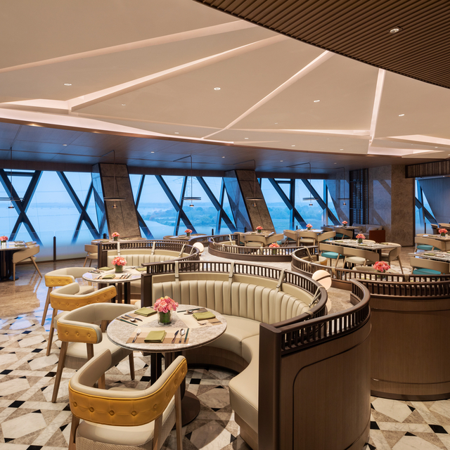 青雅中餐厅优雅而现代,位于21F,楼层更高,观湖视野更为开阔。