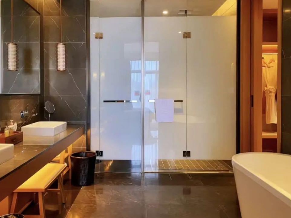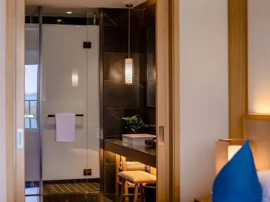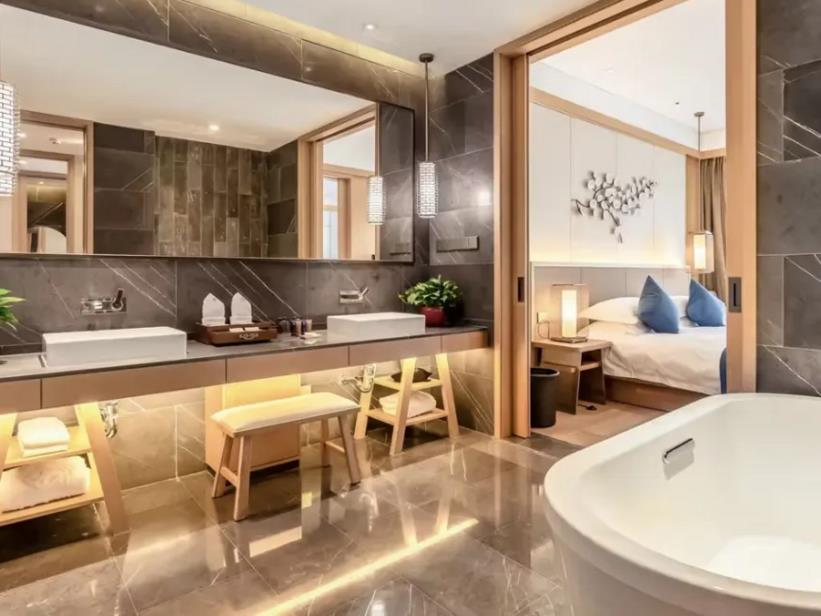 干湿分离浴缸+淋浴的浴室设计与管家式服务无微不至,舒适感好评。高织棉床品+金可儿床垫+电动窗帘,度假感无处不在。