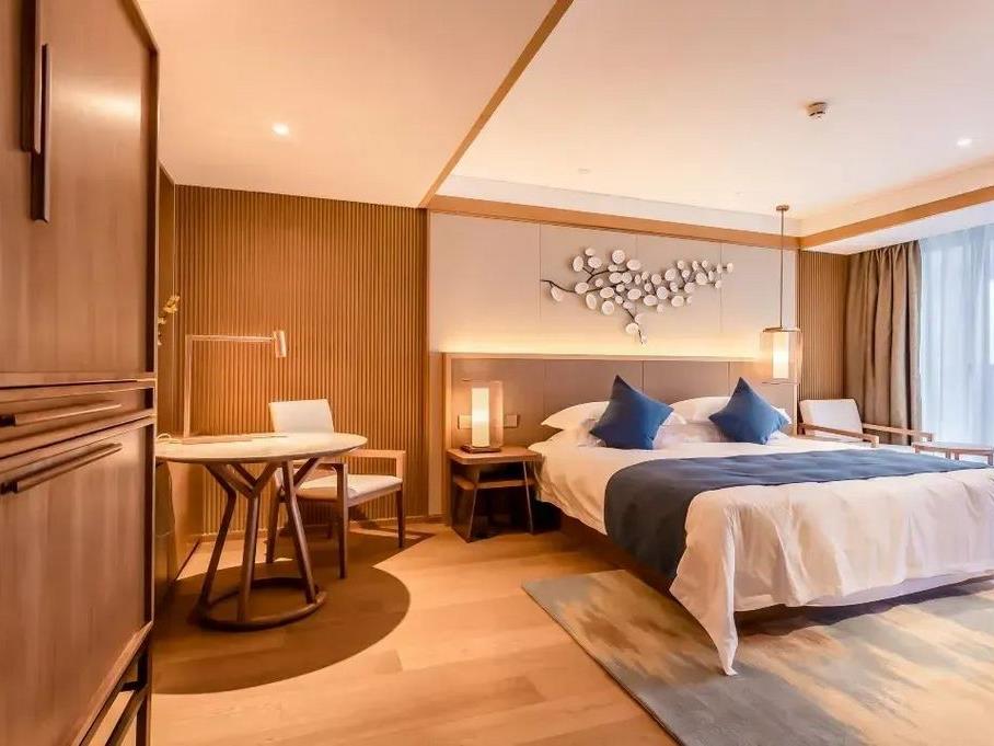 其中,80m²湖景套房,配1张1.8米大床。套房式设计,配景观阳台,站在阳台或是在客厅,都能一览湖景。