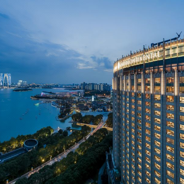 苏州洲际酒店的选址向来是它的一大招牌优势,正对金鸡湖,外形呈新月形,本身就是地标建筑,距诚品书店、新光天地、久光、圆融时代广场也就五六分钟步行时间,吃喝玩乐应有尽有,苏州地铁1号线和8号线时代广场站1号出口直达