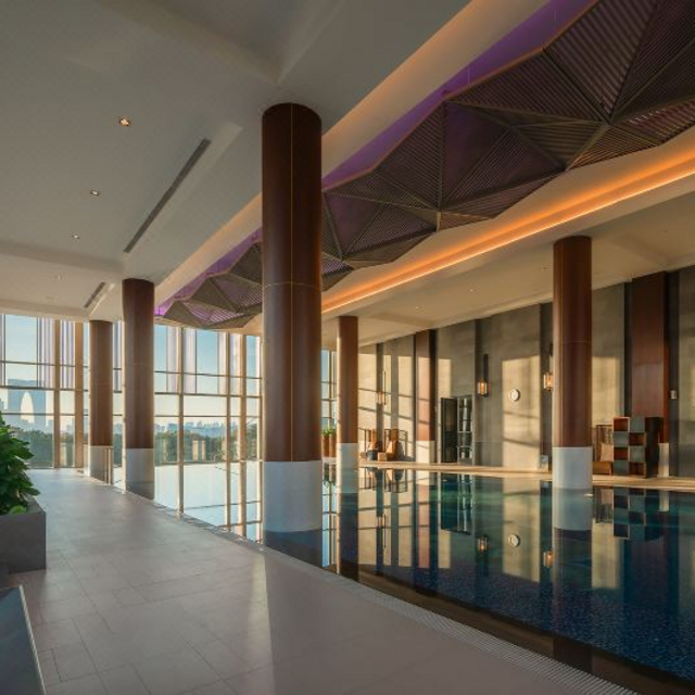 酒店内除了有2024年焕新升级的全湖景健身中心 (全新泰诺健品牌器械提供多元锻炼场景),的就是室内泳池,不仅面积大,而且view很棒,可将依依垂柳的湖光水景和苏州城市天际线尽收眼底。