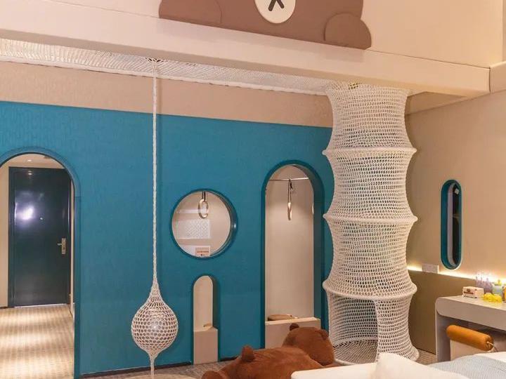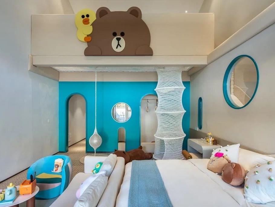 用色明亮,处处是布朗熊系列的元素,有投影、地暖、LINE FRIENDS萌系客房产品,还有适合孩子们玩耍的游乐设施!滑梯/爬梯、攀爬绳网、绘本、玩具…光是在房间内,就能玩上大半天!(滑梯或爬梯,随机安排,以实际入住为准)