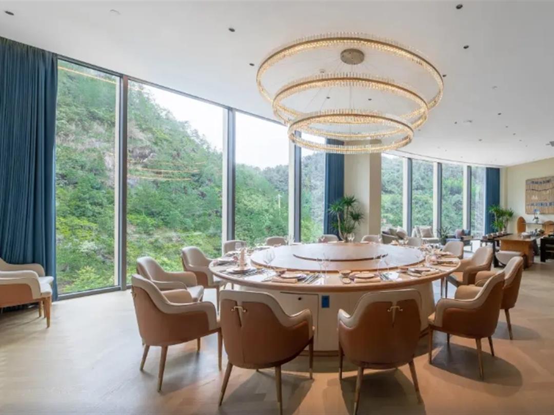 位于4楼的野炉全日制餐厅,设计感满分,开阔通透,落地窗+岩石洞穴的设计空间,让人置身其中,仿佛在大自然里探索一般。一日三餐,均可在此享用,早餐为自助式,中式和本地特色都有,属于文成县早餐出品里排名前列的酒店!