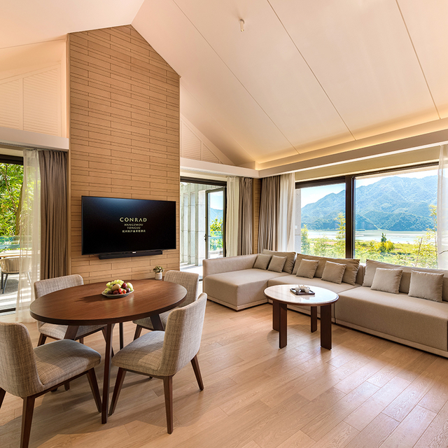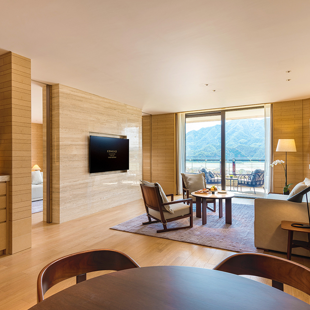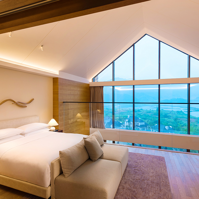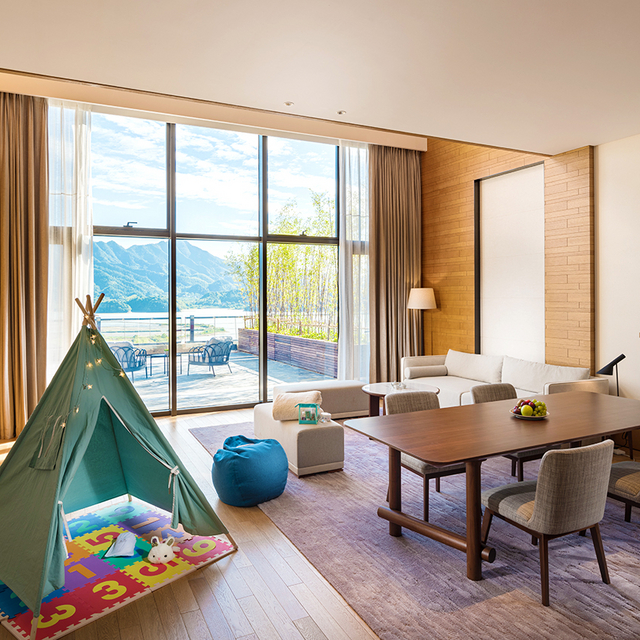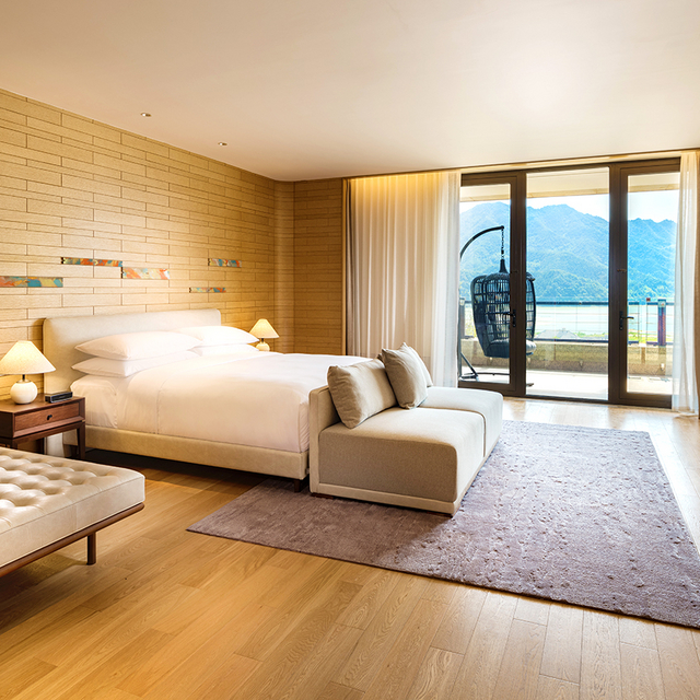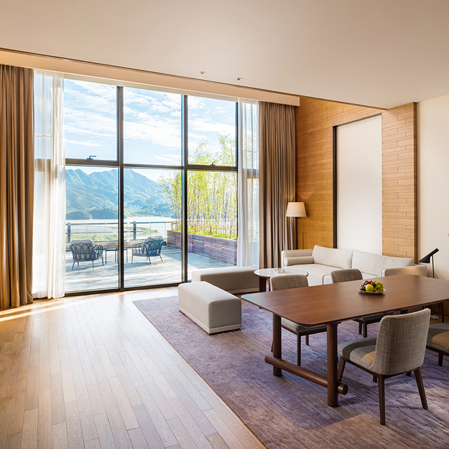 坐拥私密山水的杭州桐庐康莱德酒店,客房不足百套,基础房即为豪华套房,面积85㎡起(含户外景观露台),能实现躺看四季美景的度假愿望。