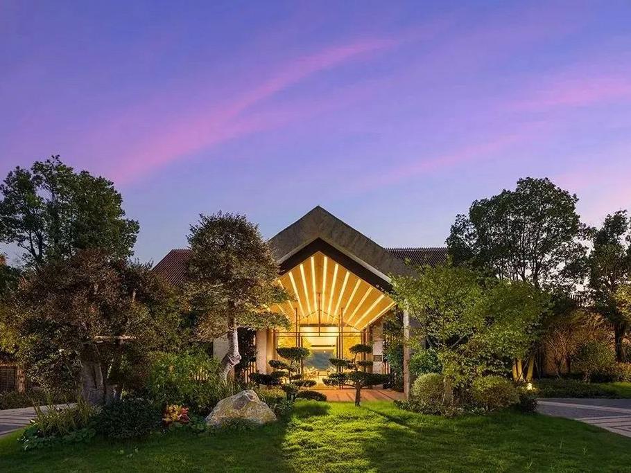 酒店在湖边打造了超美的婚礼平台和湖畔凉亭,傍晚时分,红霞漫天,灯光亮起时,浪漫满分!