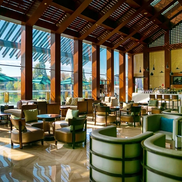 酒店设置了5间不同风格的餐厅和酒吧。松露西餐厅提供丰富的自助餐,逸园中餐厅充满西溪生态元素,提供精美地道江南菜;大堂吧可品尝各式缤纷美点和饮品;熙悦西餐厅环境雅致静谧;茗翠轩拥有环湖露台吧,感受茶文化。