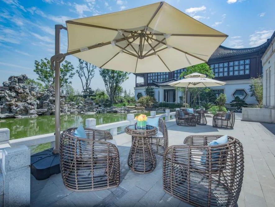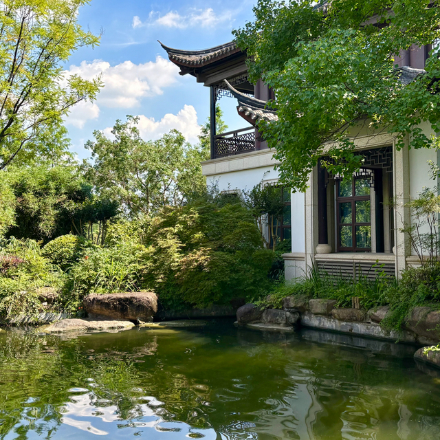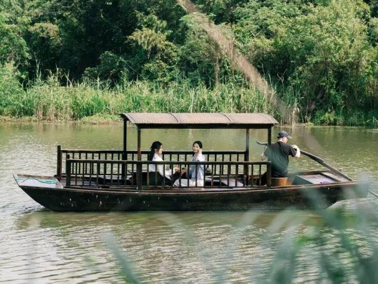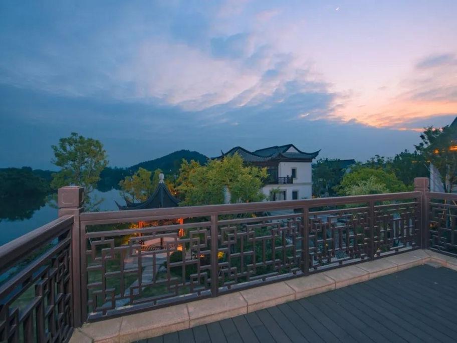 你可以在露台上眺望湖光水色,穿梭园林拍上美美的古风大片,甚至可以乘坐摇橹船享受诗意下午茶(需额外付费,详询酒店)。