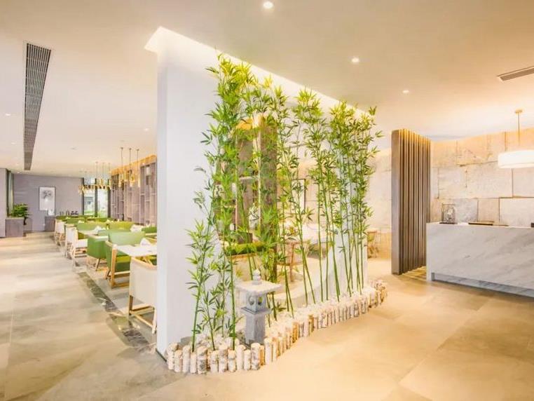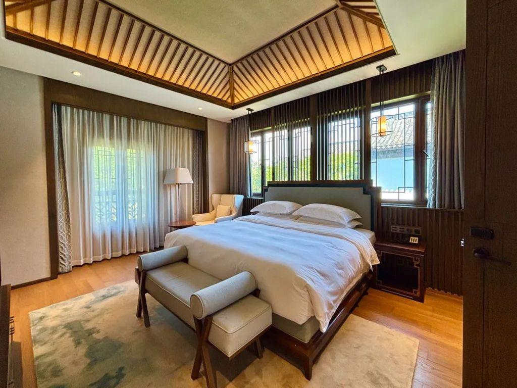 酒店内部也结合了非常多的东方元素,宛如云锦的吊灯、灵感来自活字印刷的背景墙,以及竹子、灯笼、屏风、圆窗...酒店各个区域也被冠以“芳园、畅园、香园、馨园、和园、润园、泽园”之名,可谓将古风的古典优雅展现得淋漓尽致。