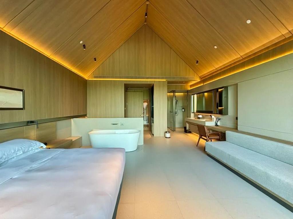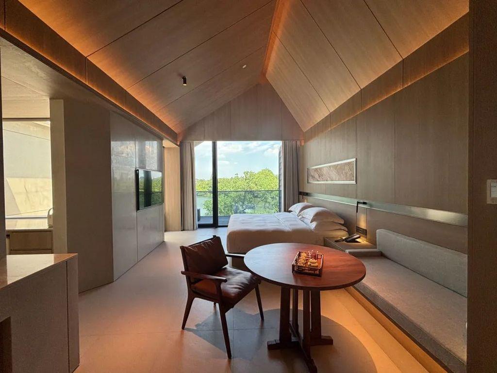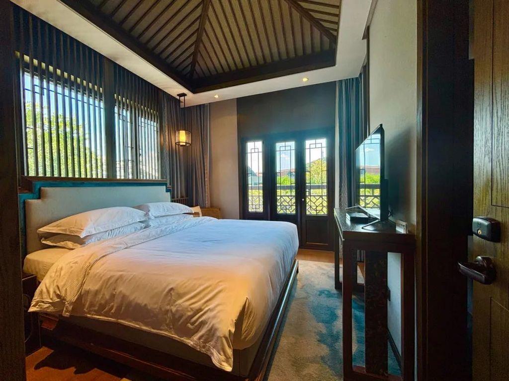 酒店房量少而精,拥有一期客房、二期客房,院景房、湖景房、家庭房、套房、别墅等多种房型共计50余间,面积38㎡起跳,空间感十足。一期新中式风格,二期更具设计感,带来不同的入住体验。