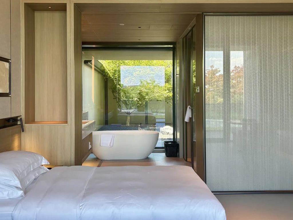 园林,可以说是酒店设计的精华所在。多个园林或独立、或连通、或可眺望湖景,散落在酒店各处。
