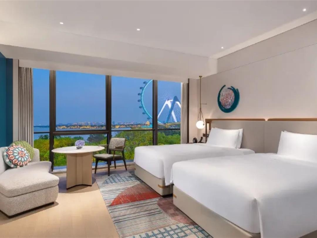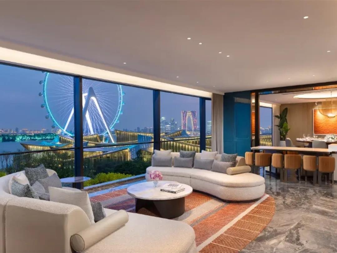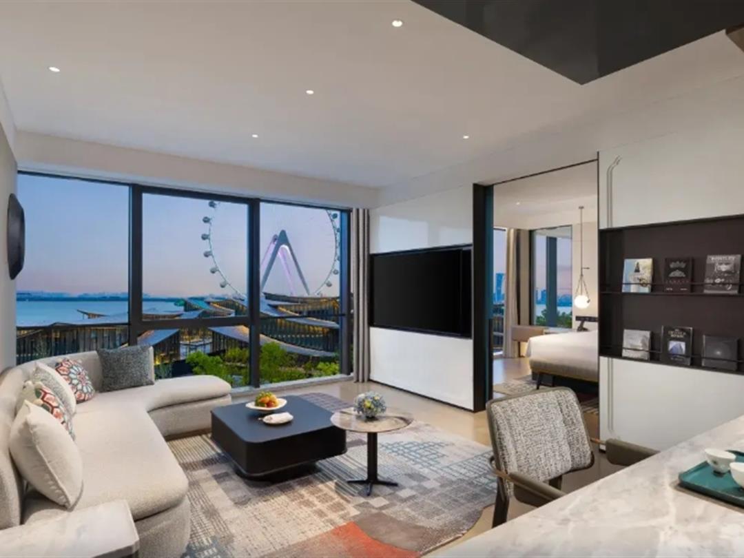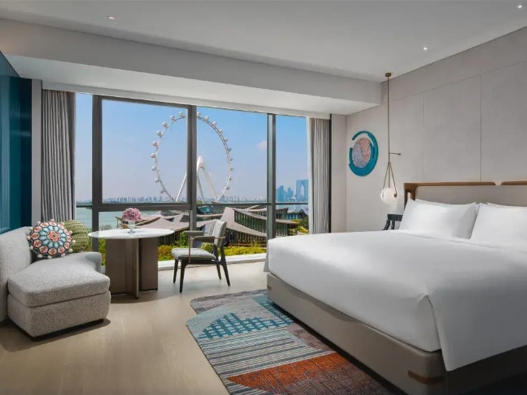 豪华精品房 东方之门景观(49㎡),既能看到摩天轮和湖景,也能看到园区标志性的东方之门等↓