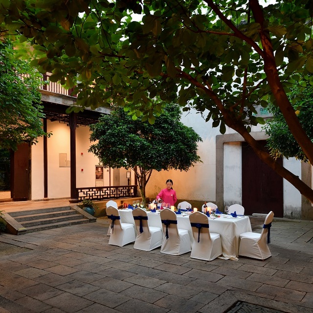 酒店自助早餐品种不算繁多,以精致见长。在面档可以来上一晚热腾腾的地道苏面或馄饨。想尝尝苏帮菜私房菜,首推酒店的潘家私房菜茴香餐厅,这里供应精致细腻的苏式菜。酒店还有”探花宴“私房名菜,能一品“贵潘”风华。
