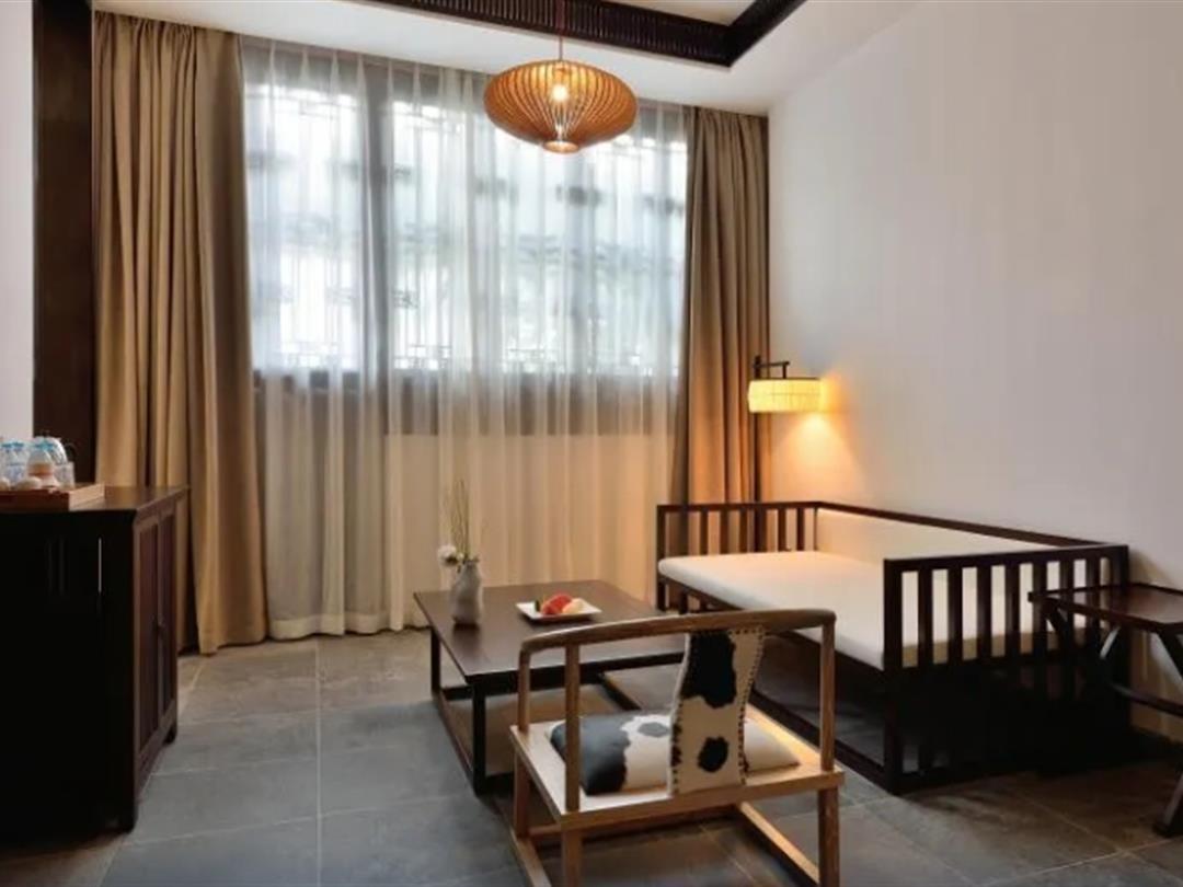 探花府目前一共21间客房,大量使用古典器具、棉麻材质作装点,更显古朴、简约,别有韵味。不同的房间分配了不同的风景,有的带有独门后院,安静私密,自成天地;有的推门便是池塘,锦鲤成群,碧波荡漾;还有的可以凭窗远眺,坐观古城风貌。