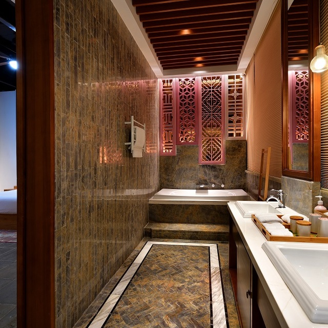 而富有品质的现代设施,保证住得舒服:东南亚天然乳胶棉床垫、TOTO智能系列的盥洗、卫浴用品、花间堂柠檬马鞭草系列备品......房内布草也由国际酒店供应商量身定做。