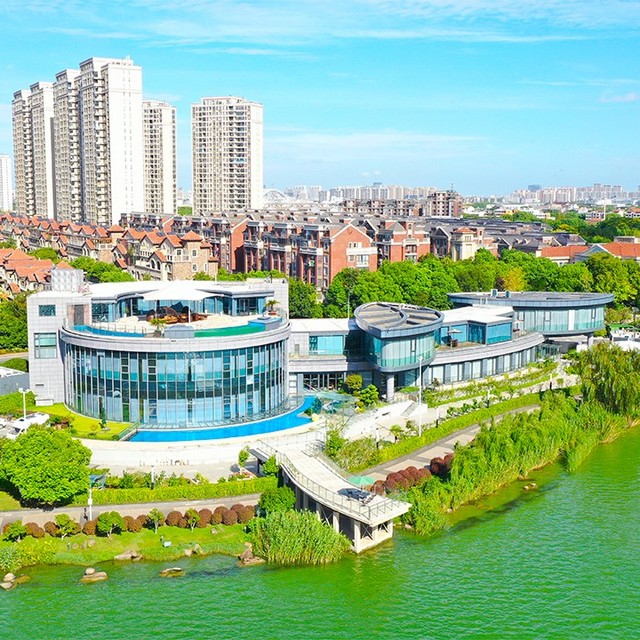 酒店位于风光秀美的苏州尹山湖畔,总建筑面积约1万㎡,依托于得天独厚的自然生态条件,潜心规划设计,让到访者O距离亲近213万㎡湖光水色,归心自然“慢”的度假氛围,它满分诠释!