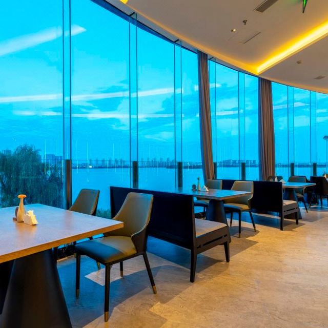 酒店餐饮区视野开阔,直面浩渺烟波。