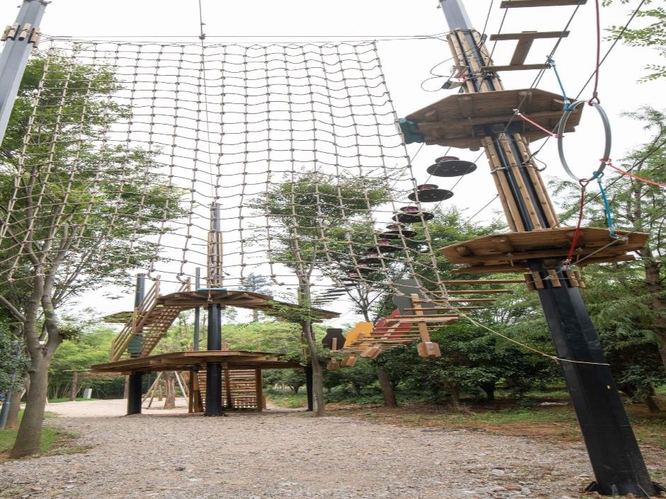 由南京沃普公司倾心打造的户外探险乐园。全部由法国团队设计、原装引进、全程建造以及现场培训,严格通过欧盟安全标准EN15567,对自然环境零负荷。它秉承了瑞上精湛工艺,只要一个滑轮,孩子们便可以轻松上线挑战难关了。