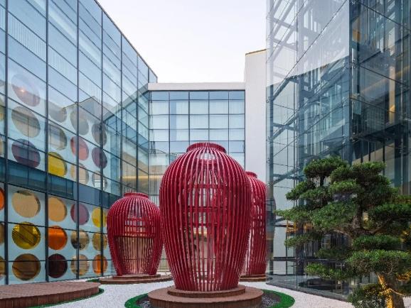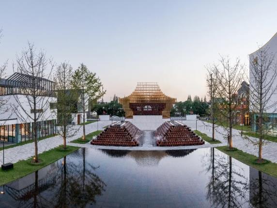 “沙洲优黄”有着120年的历史,知名黄酒品牌,依托得天独厚江南水乡资源和深厚积淀的黄酒文化,文化园集文化、研发、休闲于一体的工业旅游地,讲述酒的故事。走进中华门,上千根金色方形钢管组成抽象的古建庑殿顶式样,穿梭时光之门,走进沙洲的酒世界。走过名为“千泉”的叠水池,仿佛置身沙洲优黄存酒仓库,1724口酒坛双侧堆叠为九层,倾倒甘醴,水声袅袅诉说着沙洲的百年历史