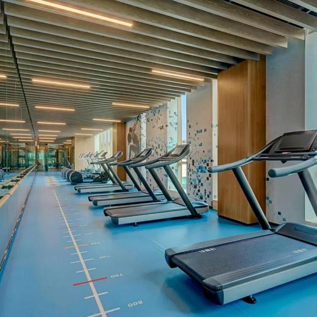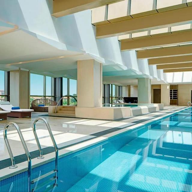 酒店内设计了健身房、室内恒温泳池等康体设施,可以满足运动达人的撸铁塑形需求。