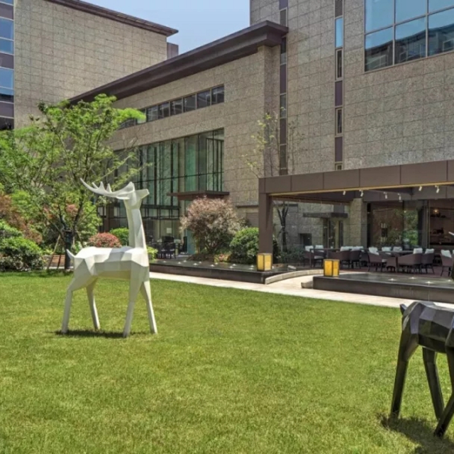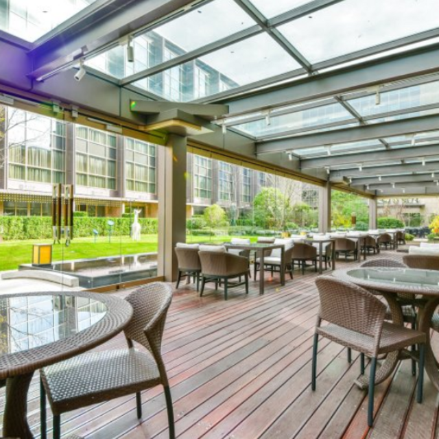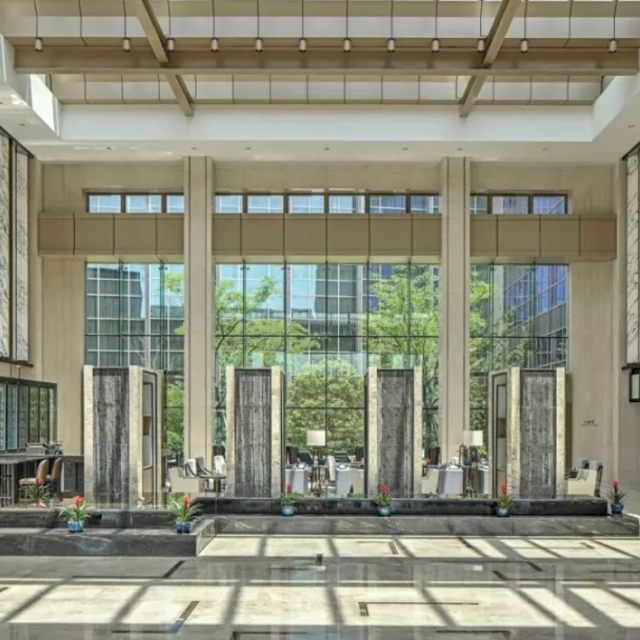 整体风格兼容现代、色调简洁雅致。玻璃屋顶,使得大堂通透明亮,天气好时,阳光慢悠悠地从四面八方满满舒展开来,非常。
