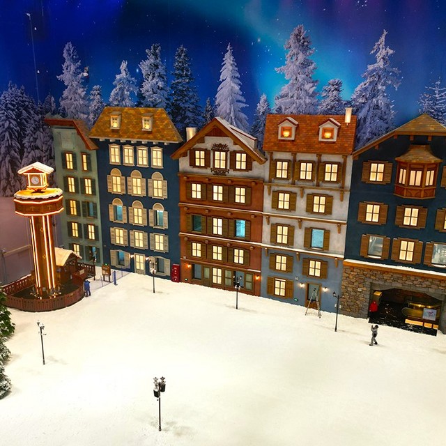 进入雪世界,看到位于一层的极光小镇!除了二层是需要付费体验的滑雪学校,一层、三层至5层,多达16项娱雪项目可以畅玩。